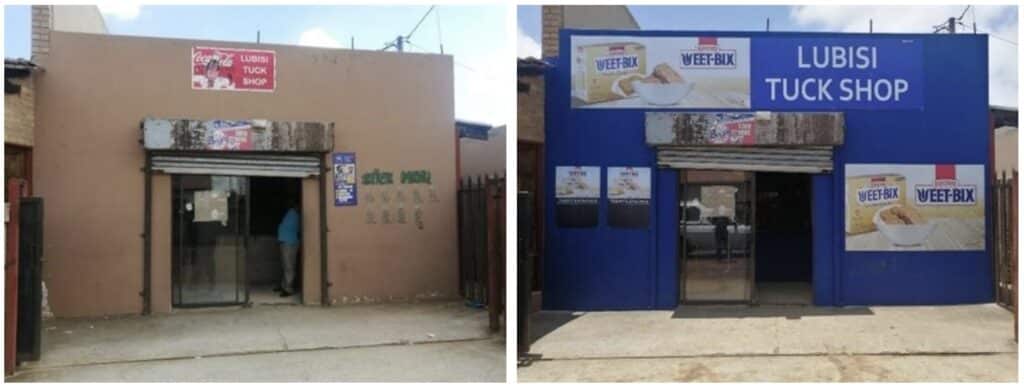 Lubisi Tuck Shop, before and after.